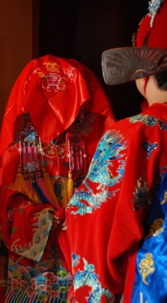 齊眉低身對笑兮 新婚吹燭相擁兮